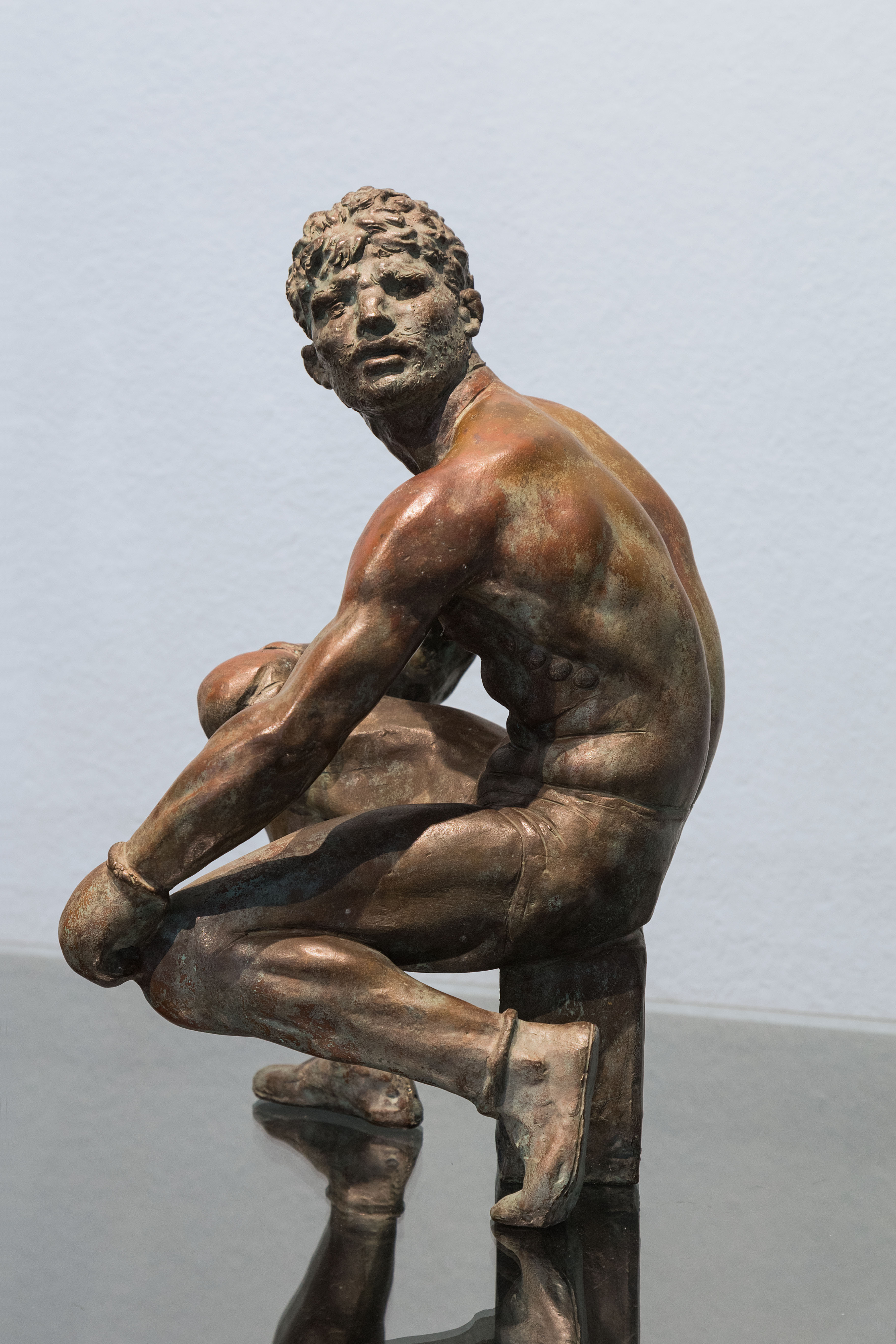 Le fonti di questi bronzetti sono spesso illustri e antichi – per esempio, il Pugile delle Terme del Museo Nazionale Romano di Palazzo Massimo è alla base di uno dei pugili del 1956, che rielabora una statuina in terracotta del 1931 – ma Messina evita un’eccessiva connotazione archeologica, inserendo dei dettagli contemporanei come i guantoni, i boxer o gli stivaletti.