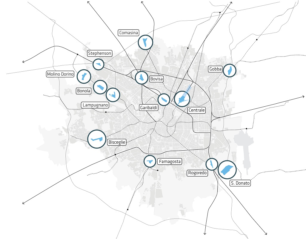 La pianificazione urbanistica sarà fortemente connessa allo sviluppo delle infrastrutture di mobilità, che nei prossimi anni vedrà la realizzazione della M4, il prolungamento della metropolitana verso Monza e Settimo Milanese, l’adeguamento della cintura ferroviaria in funzione della Circle Line e il potenziamento del Servizio Ferroviario Regionale e dell’alta velocità. Secondo una logica di crescita urbana che vuole il numero maggiore possibile di persone vivere e lavorare a breve distanza da una fermata del treno o della metro anche per ridurre la dipendenza dalla mobilità privata, il Piano incentiva interventi di rigenerazione in prossimità di 13 nodi di interscambio – Comasina, Bovisa, Stephenson, Cascina Gobba, Centrale, Garibaldi, San Donato, Rogoredo, Famagosta, Bisceglie, Lampugnano, Molino Dorino, Bonola – determinando in corrispondenza di essi la possibilità di superamento dell’indice di edificabilità massimo di 1 mq/mq previsto negli ambiti della città ad elevata accessibilità (l’indice massimo nelle aree meno accessibili è invece fissato a 0,7 mq/mq) anche attraverso la realizzazione di Edilizia Residenziale Sociale.