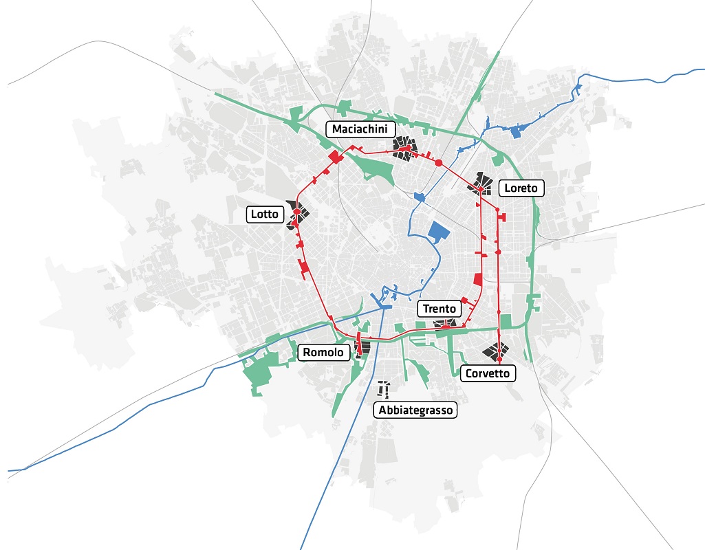 Il piano vuole valorizzare i suoi 88 quartieri ponendo al centro le sue piazze, migliorando lo spazio pubblico e i servizi per i cittadini e andando a superare il divario territoriale e sociale tra centro e periferia. Cuore di questa strategia sono i progetti per la riapertura dei Navigli, la riqualificazione degli scali ferroviari e la rigenerazione di 7 piazze caratterizzate da elevata accessibilità poste sull’asse della 90/91; Loreto, Maciachini, Lotto, Romolo, Abbiategrasso, Trento e Corvetto potranno essere rigenerati con interventi che ne migliorino la qualità progettuale, la fruibilità pedonale e l’attrattività. Anche in questi ambiti caratterizzati da ampia accessibilità sarà possibile superare l’indice di edificabilità massimo (1 mq/mq anziché 0,7 mq/mq) attraverso la realizzazione di Edilizia Residenziale Sociale.