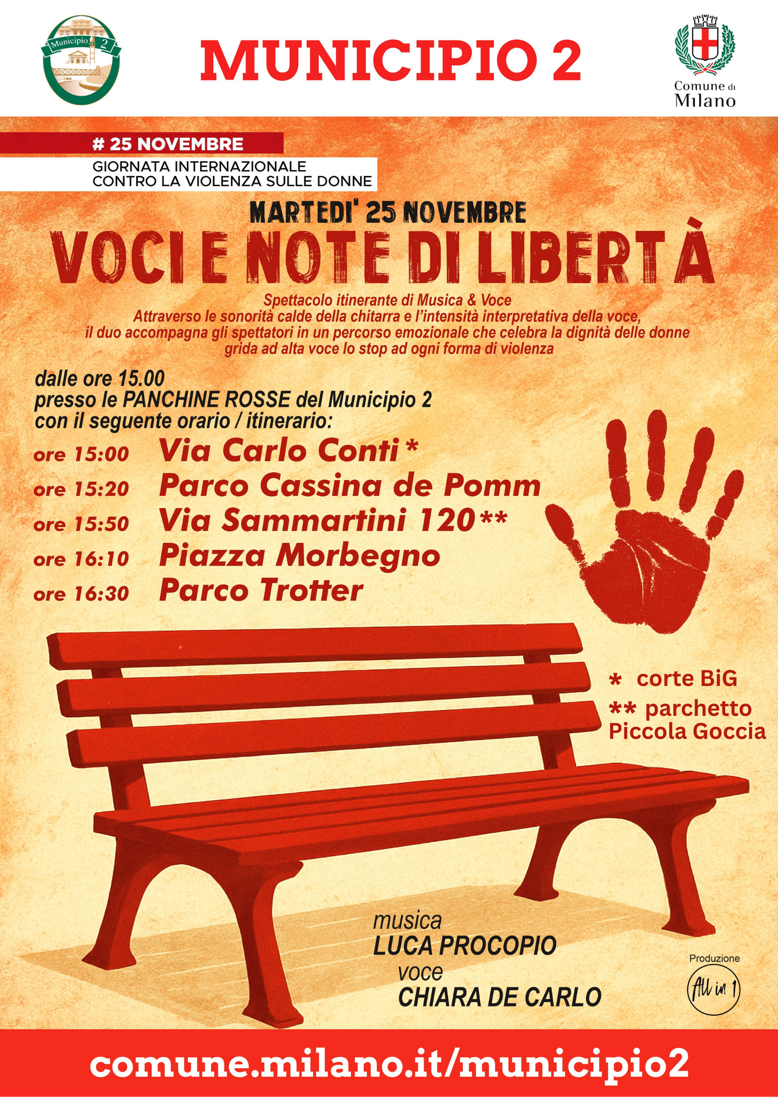 25/00 - alle 15:00 - Voci e note di libertà - Letture itineranti accompagnate alla chitarra - presso le panchine rosse del Municipio 2 (partenza da corte BiG via Conti)