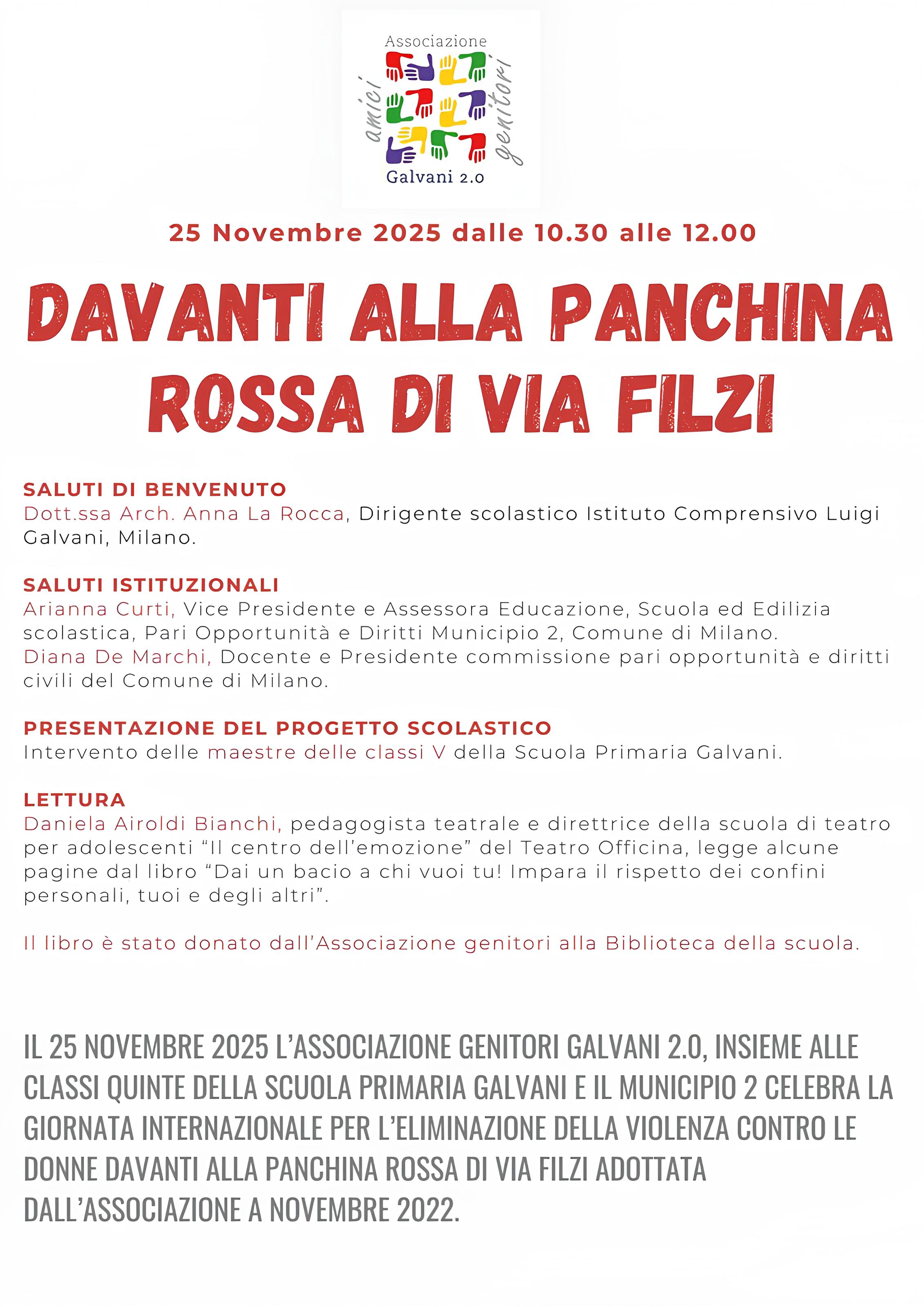 25/11 - alle 10:30 - Lettura di alcune pagine di "Dai un bacio a chi vuoi tu! Impara il rispetto dei confini personali, tuoi e degli altri" di R. Brian - Panchina rossa via Filzi