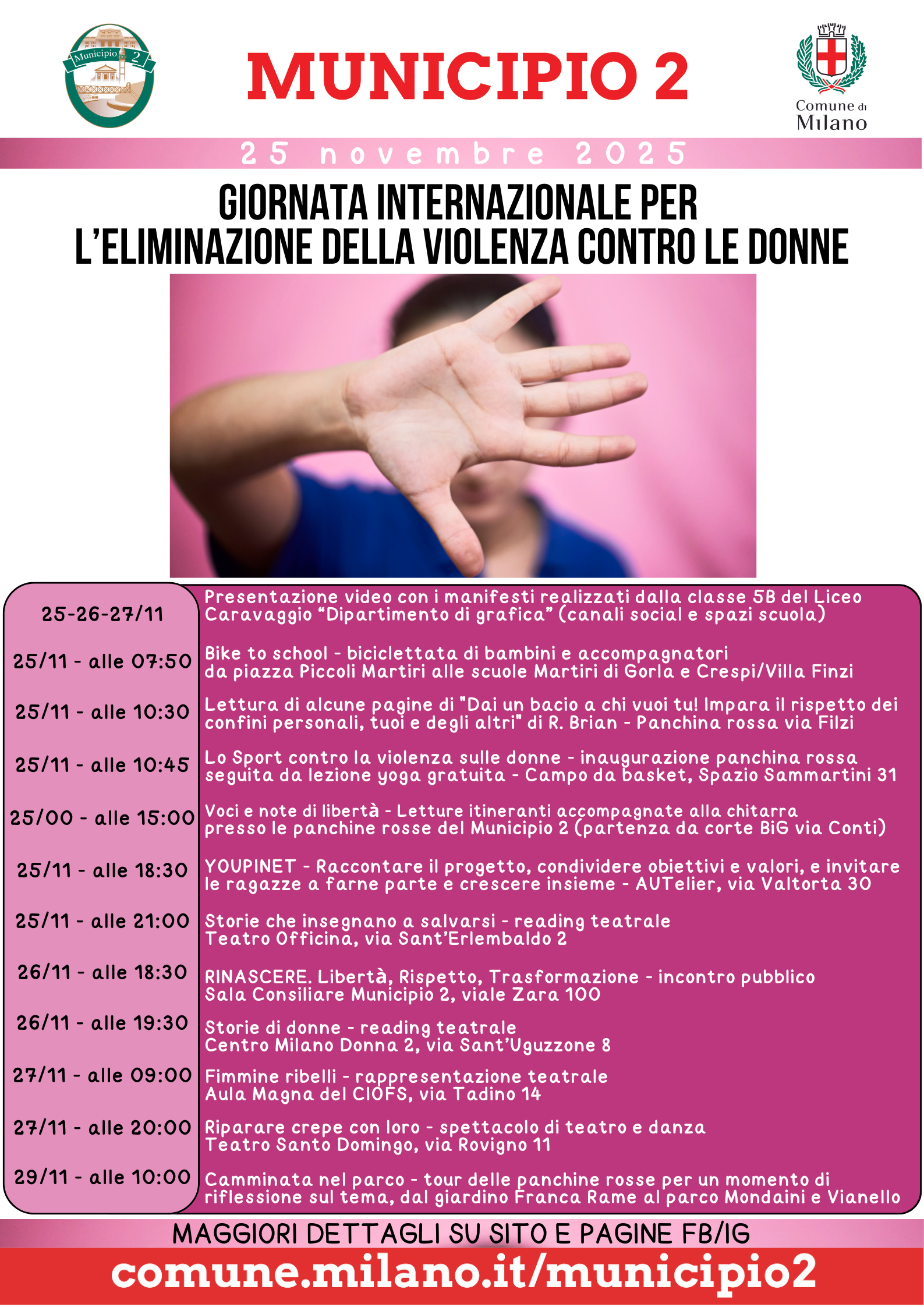 In occasione della Giornata internazionale per l’eliminazione della violenza contro le donne, il Municipio 2 propone una serie di iniziative di sensibilizzazione aperte alla cittadinanza.